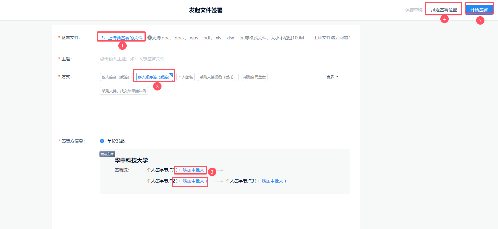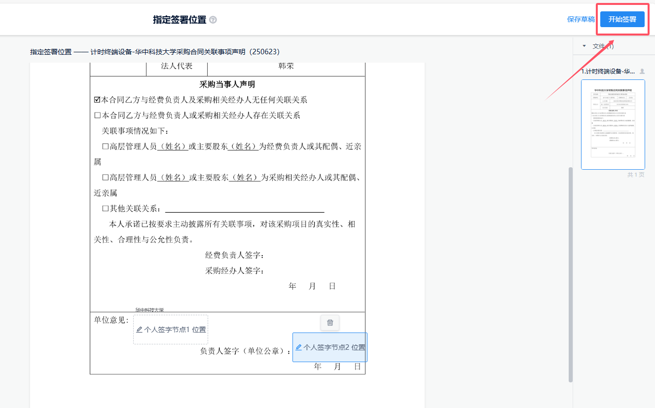 4.最后点击“开始签署”,然后通知相关签署人审核签字。