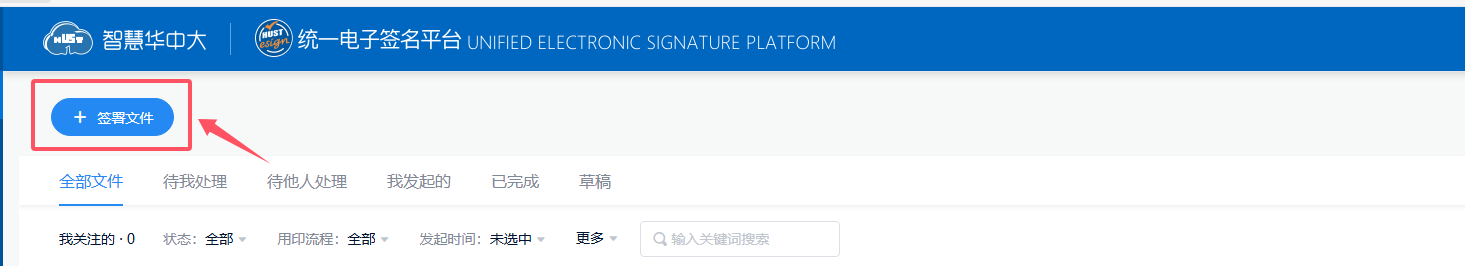 3.打开“电子签名”,点击“签署文件”—“上传要签署的文件”,将扫描的PDF文件上传到此处。