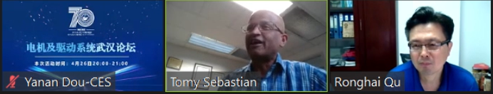 本次论坛活动虽是在线上举行,但各位专家学者交流的热情不减,多位专家学者和Tomy Sebastian博士对电机及控制系统领域的研究现状、国际动态以及前沿方向等方面的专业问题进行了深入交流讨论。