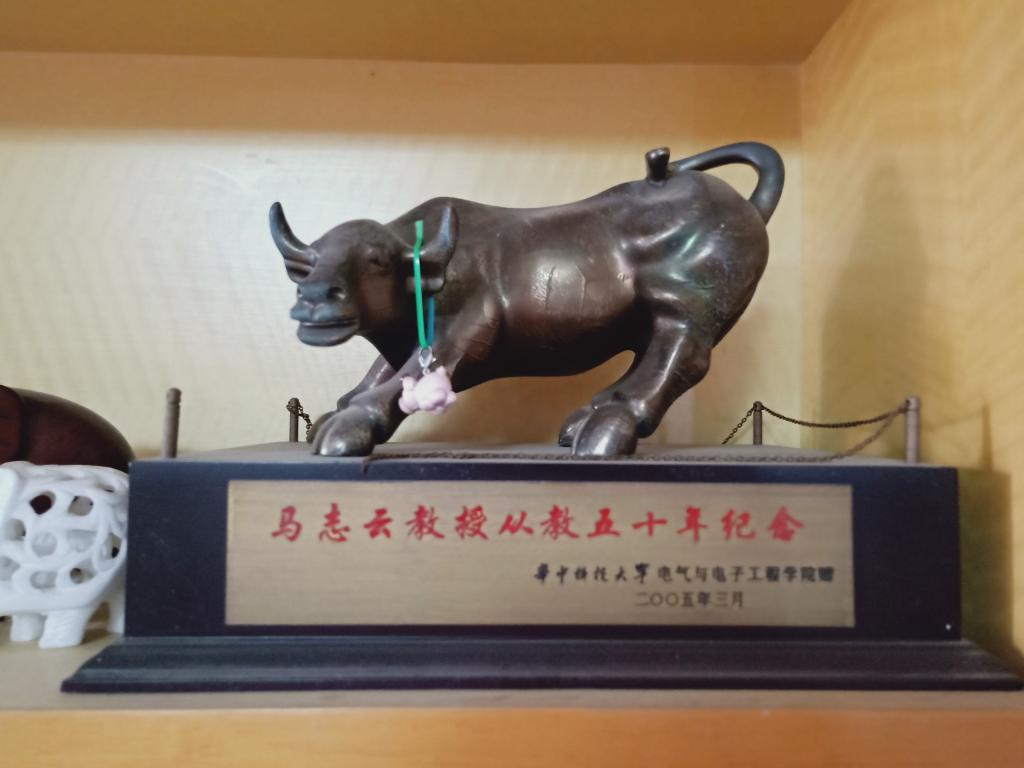 展示架上摆满了世界各地的风物,都是老师退休以后收集来的。每年老师都会出国旅行,前往两到三个国家或者地区,观览世界各地的民风民俗。马老师一件件介绍着,笑说自己“已经把五大洲走完了”。前年是新西兰、澳大利亚,去年是巴尔干、泰国,今年又与老友相约国庆后去坐地中海游轮。不远处还有一件特殊的展品吸引了我们的目光,是一头耕牛形象的雕塑——taptap点点体育从教50周年纪念,落款2005年3月。看着老师硬朗的身子骨、饱满的精神气,身为后辈的我们也深受触动。活到老、学到老、玩到老,人生有无限种精彩等待着我们探寻。