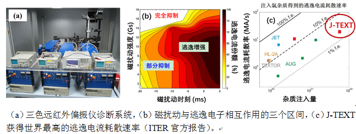 开放共享案例1:磁约束核聚变实验平台是教育部高校唯一的大中型托卡马克磁约束聚变装置,其远红外偏振仪诊断系统的主要参数居于国际先进水平。平台主要围绕聚变能研发及国际最大的合作计划“ITER”计划开展工作,采用国际合作及校所合作的模式进行建设,面向国内外各个高校与研究机构开放,承担了大量基础研究与人才培养任务。2020年,平台在磁扰动抑制逃逸电流的机理和技术方面取得了重大突破,在国际上首次实现了对逃逸电流的完全抑制和高效耗散。通过理论模拟与实验相结合的方法,在国际上首次揭示了磁扰动控制逃逸电子的规律,研发了26MA/s的世界最高速率逃逸电流耗散技术。实现对装置从逃逸电流抑制到耗散的级联保护,为ITER逃逸电流的抑制提供了全新的中国解决方案。
