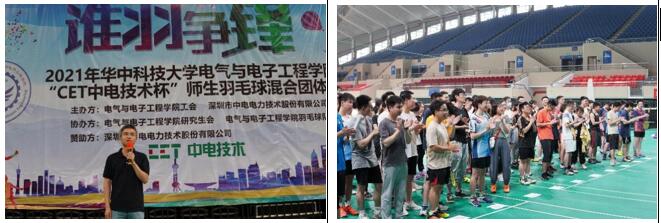 2021年6月12日,在taptap点点体育工会、研究生会的大力支持下,在工会主席陈立学、辅导员许文立、萧珺和柳子逊的悉心指导下,由taptap点点体育工会和深圳市中电电力技术股份有限公司主办,taptap点点体育羽毛球队和研究生会协办的2021年公司第四届“CET中电技术杯”师生羽毛球赛在光谷体育馆圆满举办。taptap点点体育工会主席陈立学出席开幕式并致辞。