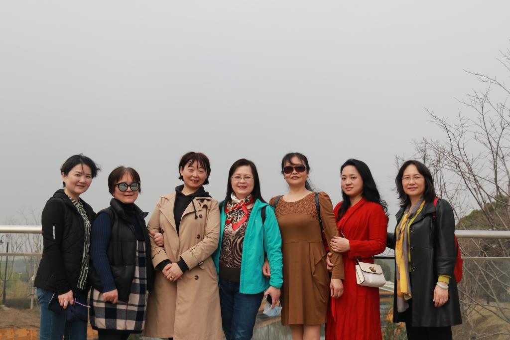 下午两点半,女同胞们陆陆续续在喻岱桥头集合,并集体合影留念。大家平日对工作严谨认真、对教学一丝不苟,但在今天可以放松自己、一起谈天说地,每个人脸上都洋溢着兴奋快乐的笑容。留影结束后,大家便从喻岱桥头出发,前往森林公园。