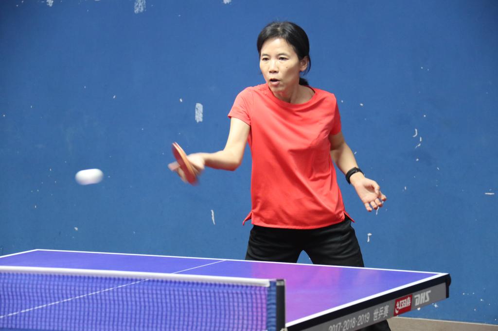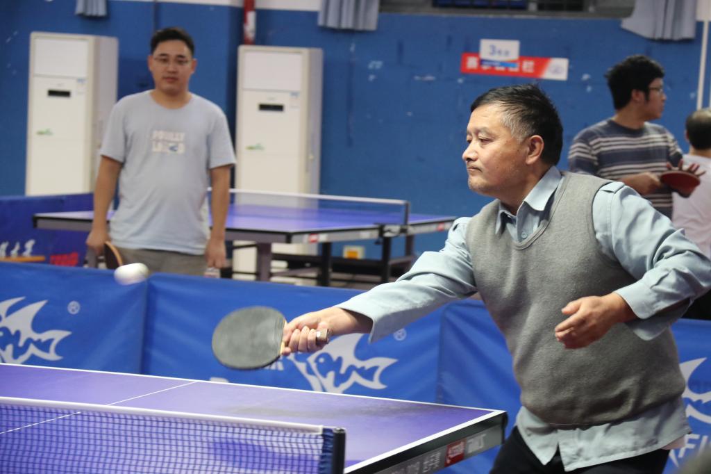 比赛现场,各位老师球技精湛,直板选手推挡搓扣尽显直板的灵活多变;横板选手正拉反拧彰显横板的侵略如火,一时间球台上精彩纷呈,有时依靠小球取巧得分,有时又以精彩对拉力克对手,引得场下惊呼不断。
