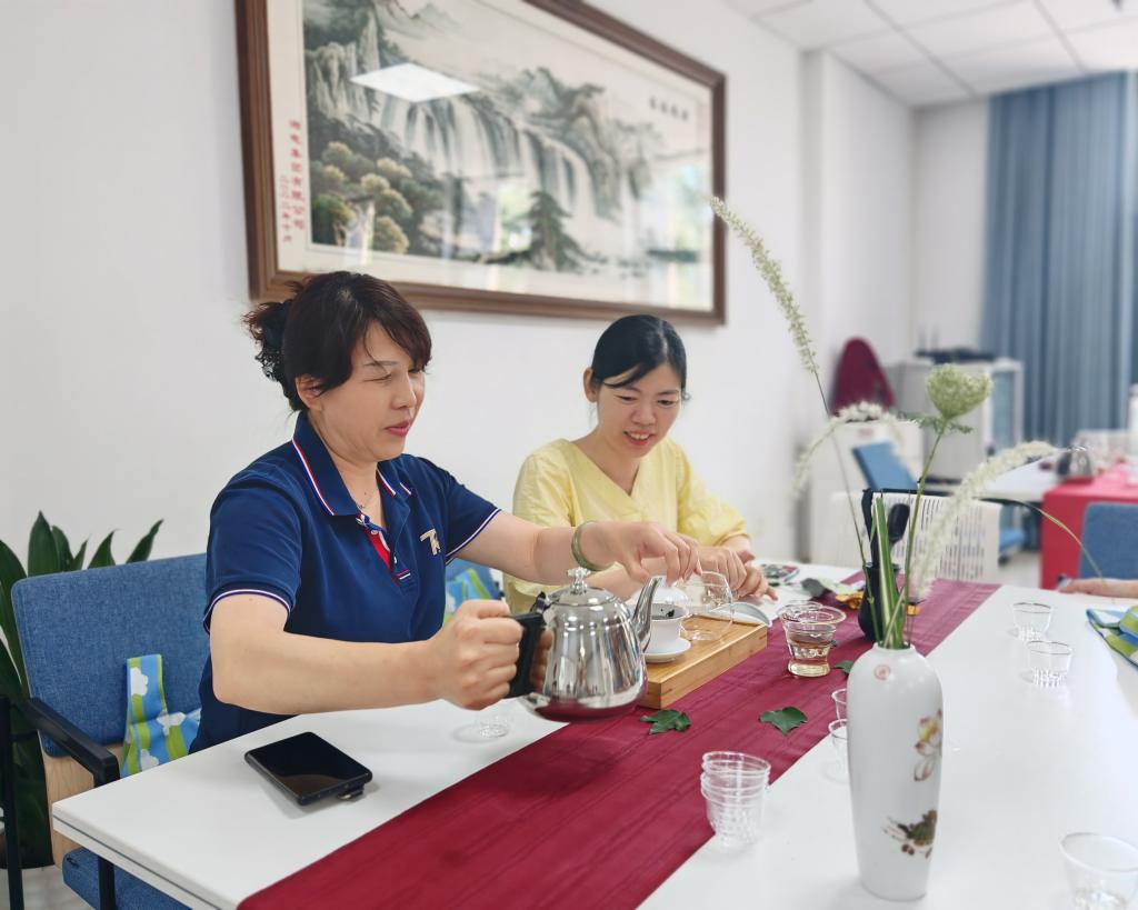 5月29日午后,taptap点点体育A220室内茶香袅绕,30余位教职工在专业茶艺师指导下开启品茶养生和茶文化探索之旅。公司工会主席李震彪与教职工们共同参与了这场集知识性、实践性于一体的沉浸式文化体验。