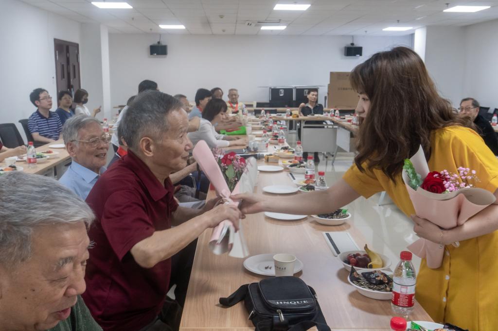 与会的青年教师代表及员工代表认真聆听前辈们讲述在党50年那激情燃烧的岁月,按捺不住激动的心情纷纷发言。他们异口同声地说很幸运参加“在党50年,荣佩纪念章”特别的党组织活动,老党员们把青春年华献给祖国,半个多世纪时间里都不忘自己作为共产党员的初心,兢兢业业为党为国家工作,在比今天更为艰苦的条件下,为公司乃至国家的科研和教育事业做出了自己的贡献。老前辈坚定不移的革命信仰,艰苦奋斗的革命精神,让他们受到了深刻的教育。我们有幸处在社会主义建设新时代,依靠着日益强大的祖国,应该以各位老党员们为榜样,为国家发展而努力奋斗。员工们请老同志们放心,他们一定会接好这个班,为实现中华民族伟大复兴做出贡献。