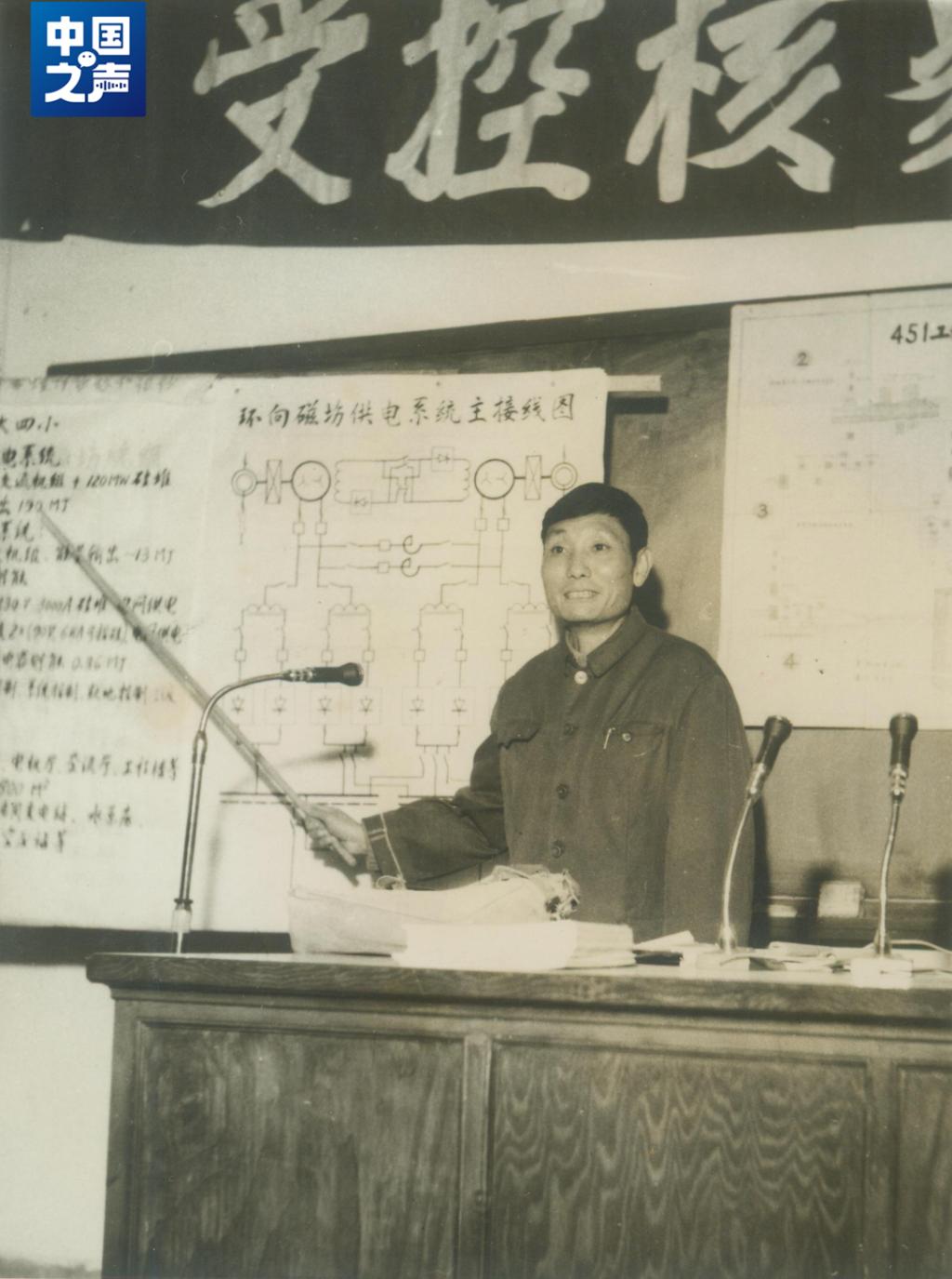 △20世纪70年代,潘垣在作“中国环流器大科学工程脉冲电源系统”的报告。