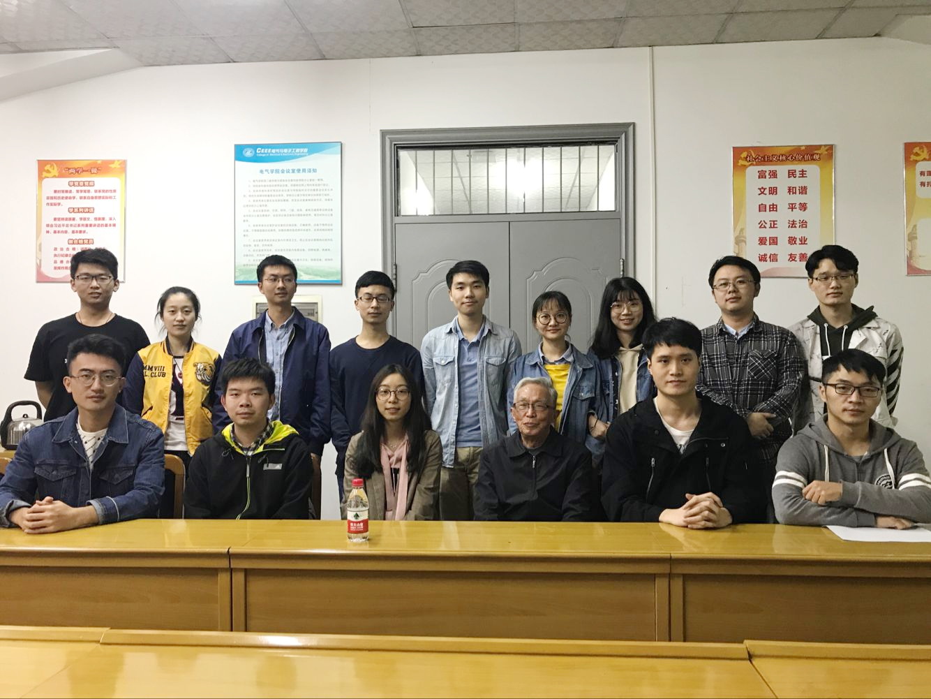在硕士1805班党支部,叶妙元老师借着“学习”这个话题,为同志们分享了他60多年来的学习、工作经历。叶老师在50年代考入了当时的华中工公司,之后便从事电测方面的工作,先后涉及过欧姆基准、强磁场、超导等方面的课题。当时的科研条件并不如现在这样优越,那一辈科研工作者,发扬了艰苦奋斗的精神,在一穷二白的基础上取得了硕果累累的科研成果。到如今经过了几十年的奋斗,我国终于建成了坚强的智能电网,叶老师为此感到相当自豪。有同志提问应该如何做科研,叶老师回答道,首先,课题的精神要吃透,要广泛的阅读资料,抓住课题最根本的问题;另外就是要攻关,叶剑英有一首诗写到“攻城不怕坚,读书莫畏难。科学有险阻,苦战能过关”;还要有明确的技术方案,多与老师沟通;最后就是沉下心来,几十年如一日地刻苦工作。除了学习和工作以外,叶老师很亲切地聊了许多生活上的事。叶老师生活中是一个很自律的人,从来没有睡过懒觉,到了80岁高龄依然每天坚持锻炼,真正做到了“每天锻炼一小时,健康工作50年”。他再三叮嘱同学们,科研工作再忙也不能放弃锻炼身体。叶老师动情的说:“我们共产党员,就是要为党和国家做一份事业,随时都要想着如何为党和国家做贡献。这并不是什么空话大话,而是每一个共产党员都应该牢记于心的行动准则。”他以实际行动实现了自己的党员理想,在场的青年同志们都深受感染,掌声如潮水一般久久没有停歇。