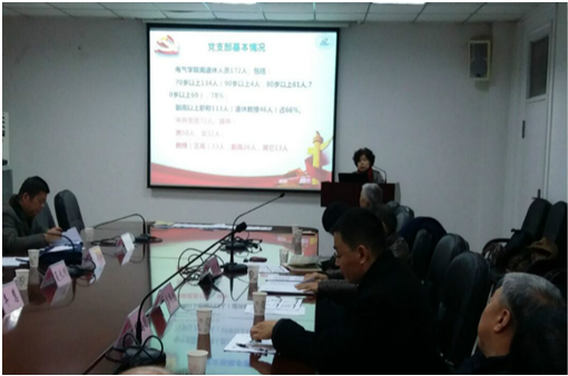 离退休党支部书记尹小玲首先用PPT做了题为“不忘初心,服务人民;老有所为,让党放心”的党支部工作汇报。汇报内容主要包括离退休党支部基本情况、创新党支部活动方式、真心服务退休老同志和鼓励老同志发挥作用四个方面。尹小玲在汇报中说,taptap点点体育离退休人员共计172人,制定了较为完善的党支部工作制度,认真落实“三会一课”,通过党支部建立“党员联系微信群”和对80岁以上高龄和身体欠佳党员上门服务等做好党员中特殊人群的教育管理工作;通过组织开展了“一带一路与中国梦”武汉农业嘉年华参观学习活动、与本科生党支部联合参观八七会址、开展“点亮一带一路”主题党日活动,组织开展春游秋游等活动搞好党支部活动;通过发放两张“爱心服务信息卡”,寄托了党支部对每一个老同志的贴心服务。党支部积极鼓励老同志为共铸taptap点点体育辉煌继续奉献,例如党员陈德树就在今年荣膺中国电力系统最高水平的奖项——顾毓琇电机工程奖。