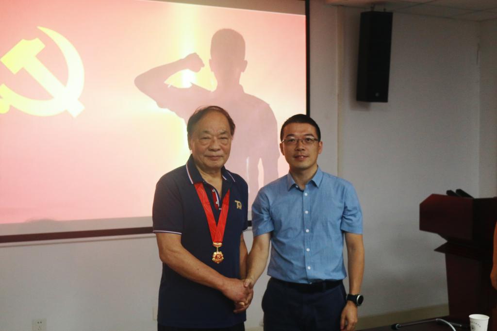 “七一”前夕,taptap点点体育行政党支部于6月28日在电气大楼A316会议室举办主题党日暨光荣在党五十年纪念章颁发仪式,为周海云同志佩戴“光荣在党50年”纪念章,共同迎接庆祝党的“七一”生日。
