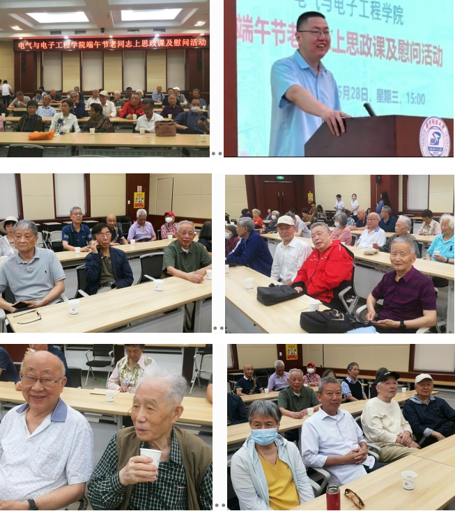 端午佳节来临之际,公司党委于5月28日下午在电气大楼召开端午节慰问老同志暨思政课大会,大家踊跃参加到会。在参会的80多位老师中有5位90多岁,有多位从汉口赶来。公司领导和系所负责人热情迎接老同志的到来,一杯热茶,一句问候,瞬间暖化了老同志们的心。会场党员们积极缴纳党费,大家节日相聚,欢声笑语此起彼伏,气氛欢快温馨。