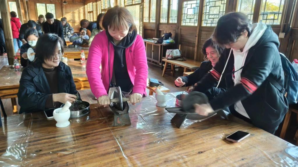 之后进行了交流座谈与劳动体验。大家在教练组织开展香囊制作活动,在轻松愉快的氛围中,每位同志充分发挥自己的创作能力,精心研磨,认真包扎,一个个精致的香囊顺利完成。