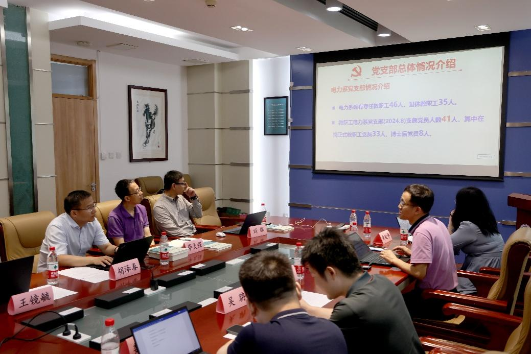 电力系党支部书记彭小圣围绕电力系党支部概况、“三会一课”开展情况和人事人才工作进行交流,重点介绍了电力系党支部在党建工作方面的实践与思考。